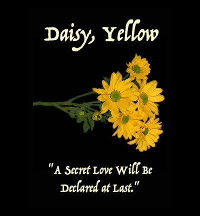 The Yellow Daisy, like the White Daisy, is used in the folkloric fortune-telling ritual that young girls and women employ to find out if their beloved truly loves them in return. They pull the Daisy petals one by one, alternating between "He loves me" and "He loves me not." The last petal pulled tells the truth of the matter. Yellow Daisies are symbolic of a surreptitious affair, for as the saying goes, "Daisies Don't Tell." However, unlike the circumspect White Daisy, the Yellow Daisy expresses the cheerful belief that "A Secret Love Will Be Declared at Last."