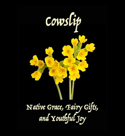 File: | File:Cowslip.jpg|The Cowslip is a yellow-flowered perennial Primrose that blooms in the fields, meadows, and coastal dunes of Europe. The leaves are edible in salads or as cooked greens and the flowers are used to make Cowslip wine. The ancient Celts believed that Cowslips point the way to hidden fairy gold. The plant's drooping flower-heads resemble a bunch of keys, so in the Middle Ages the Cowslip became known as Saint Peter's Herb, after the Christian Keeper of the Keys. In Floriography, the Cowslip symbolizes Native Grace, Fairy Gifts, and Youthful Joy. | ||