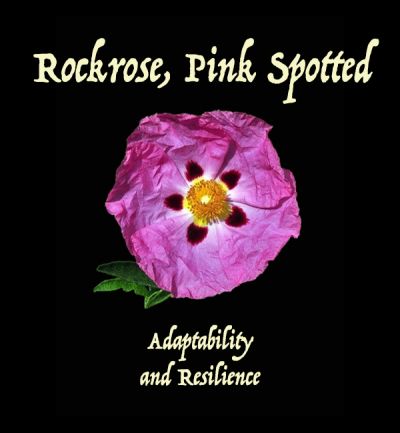 The Pink Spotted Rockrose is a cross between the White Spotted Rockrose (Cistus ladanifer, native to Spain, Portugal and North Africa) and the Pink Rockrose (Cistus creticus, native to Crete and Israel). Glandular hairs on the leaf surfaces exude a fragrant resin called labdanum. Many believe it to be the "Balm of Gilead" in the Bible, for Cistus grows in the ancient territory of Gilead. It may also have been an ingredient in ketoret, the sacred Jewish temple incense. The symbolism of the Pink-Spotted Rockrose is Adaptability and Resilience.