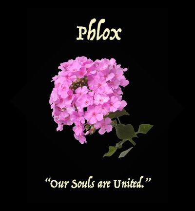 The name Phlox refers to a large genus of North American wildflowers. Some are tall and bushy, others are short and creeping, but they all bear the name Phlox, which derives from the Greek word for "flame," a reference to their bright globes of intensely vivid pink, magenta, lilac, blue, or white flowers. While all species of Phlox can be found in the wild, one particularly showy species, Phlox paniculata has entered into domestication, and it is known as the Garden Phlox. Its message to the one who receives it in a bouquet is, "Our Souls are United."