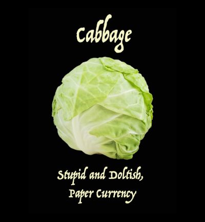 File:Cabbage.jpg|The Cabbage is a vegetable in the Mustard or Brassica family, related to Broccoli, Kale, Brussels Sprouts, and Cauliflower. Its meanings are quite varied. To call someone a Cabbage-Head is to say they are Stupid and Doltish, but Cabbage is also another word for Paper Currency, and to some folks Cabbage Leaves resemble labiae, so the old blues lyric, "He boiled my first cabbage, he really made it hot, but when he put in the bacon, it overflowed the pot," refers to a sex act, with the Cabbage represents the woman's genitalia and the bacon symbolizes the man's. | |||