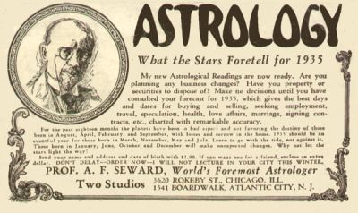 In early editions of his first book, "Humanity and the Zodiac," published in 1909, Seward described himself as "Prof. Alfred F. Seward [...] who was born in 1876 in London, England, son of Wm. Seward, astrologer and astronomer."