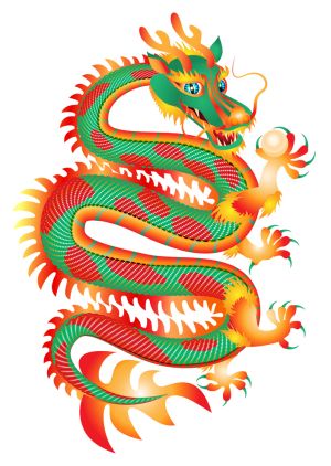 The Asian dragon, a sinuous, reptilian beast, is revered as a religious, mythical, astronomical, and astrological figure. This dragon may be associated with water, or may fly through the sky with small wings. The role of the Asian dragon, his guardianship of a precious flaming pearl, and his titular rulership of every 12th year of the Chinese zodiac are well known, even to non-Asians. If nothing more, they will encounter the dragon on Chinese restaurant menus, where he stands out because he shares a spot on the Lunar New Year cycle with eleven other animals, all of whom are identifiable living species, while he is a creature of spiritual origin.